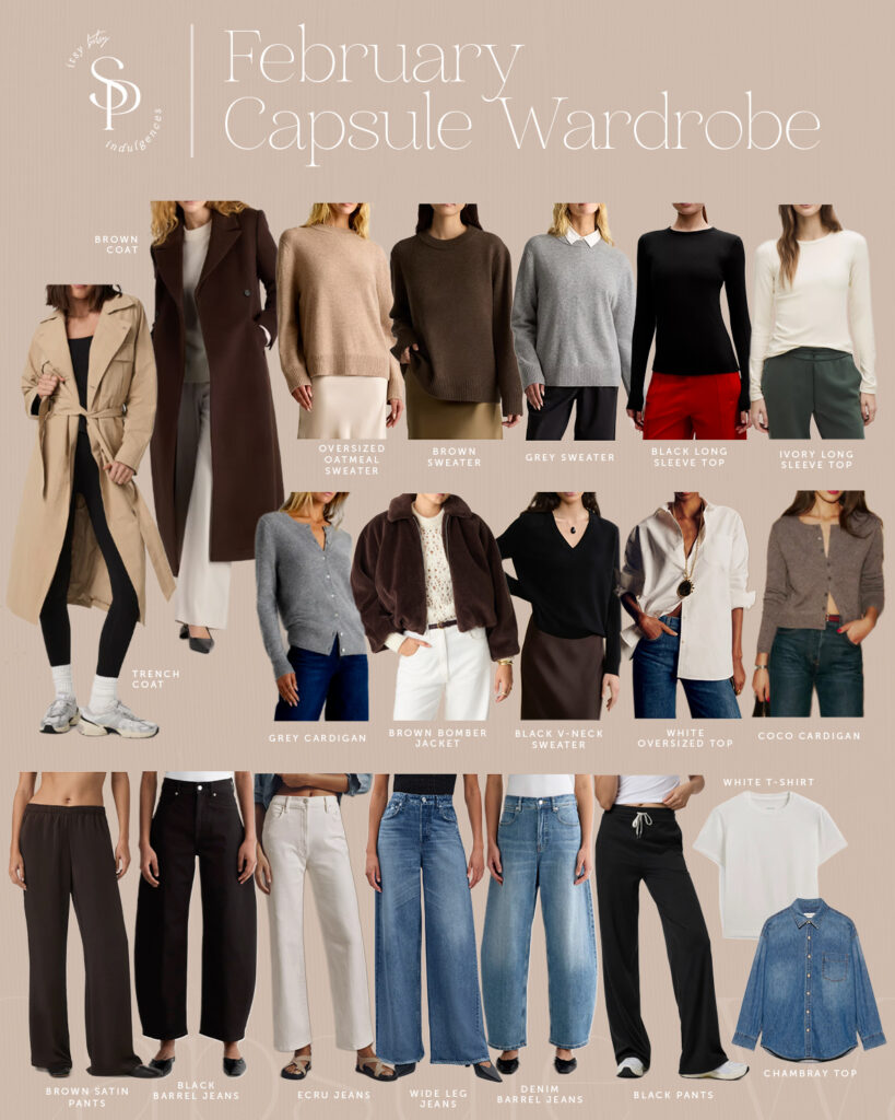 As I started pulling together my February capsule, I realized something a little unexpected: almost everything is staying the same as January. Same core pieces, same silhouettes, same everyday essentials. The only additions this month are this simple grey cardigan and a few fresh accessories to subtly shift the feel.