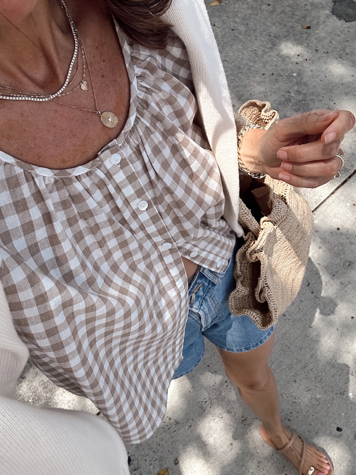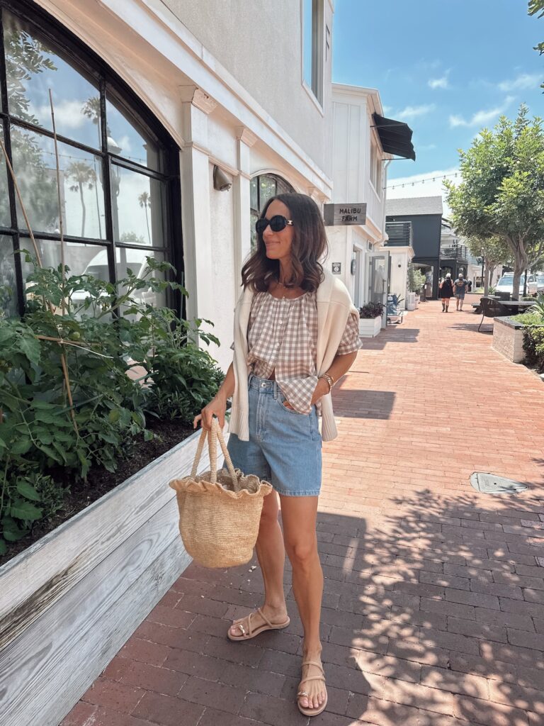 Loving gingham right now… I bought these adorable scalloped shorts and matching top and it’s so cute! Also have this gingham dress I’m bringing with us to Europe in a few weeks. This red and white gingham dress, black and white gingham skirt (in red here), and these easy drawstring pants are all so cute as well.