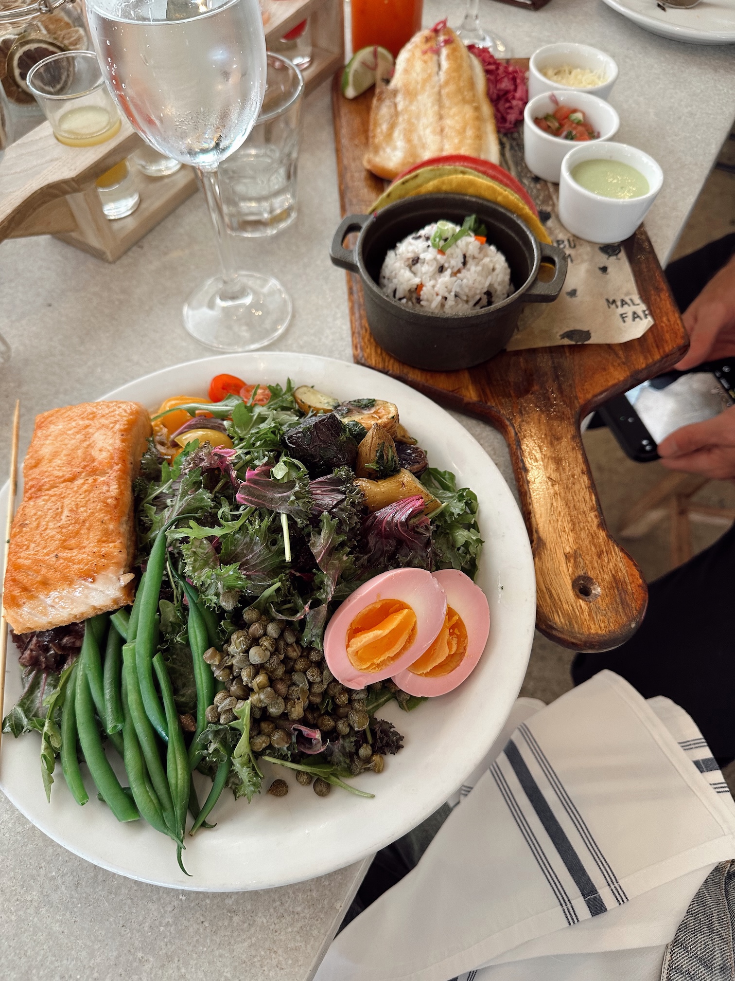 (A beautiful Friday lunch at Malibu Farms… top, shorts, bag)