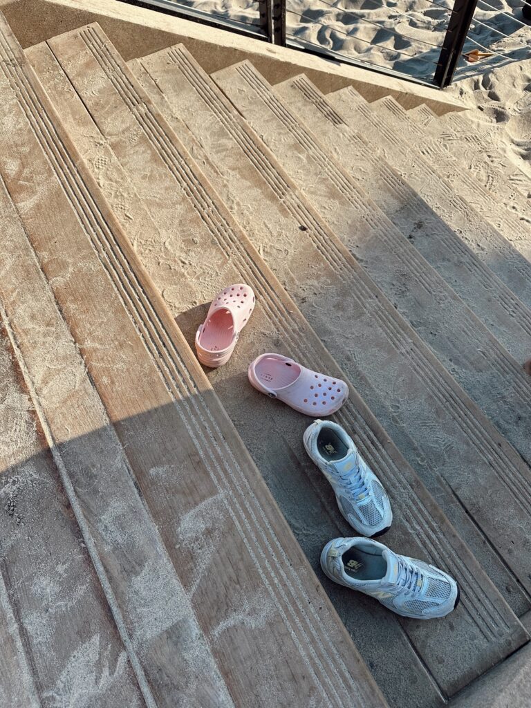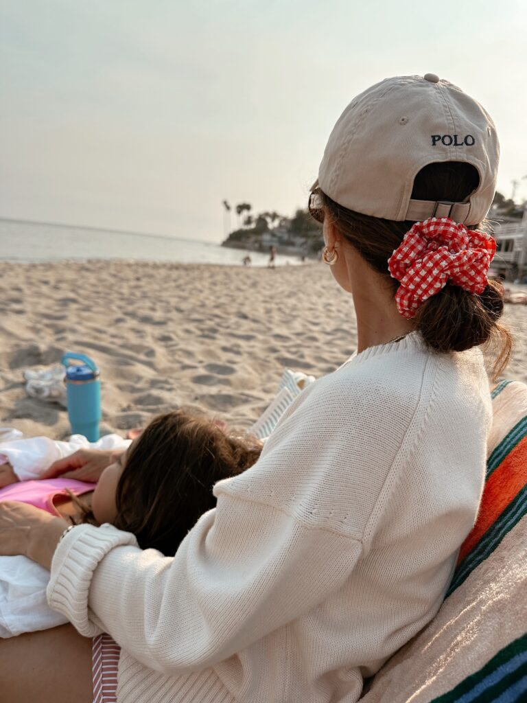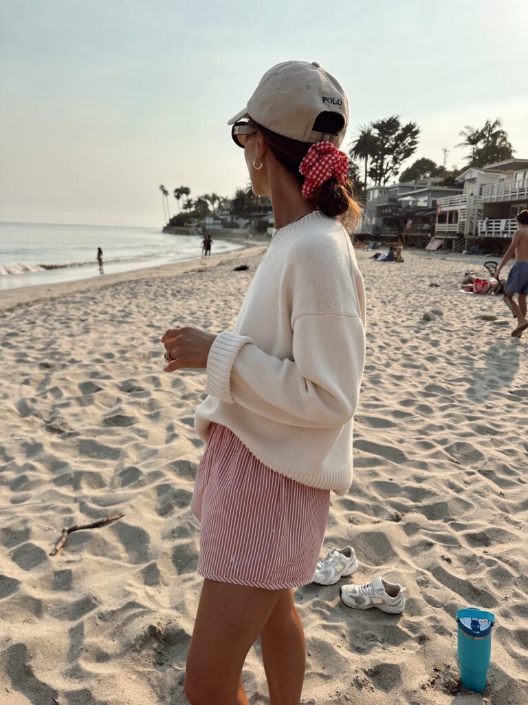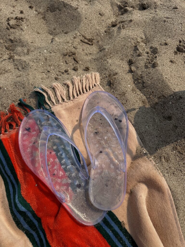 (A summer evening at the beach… chairs, towels, shorts, sweater, hat, scrunchi, sandals)