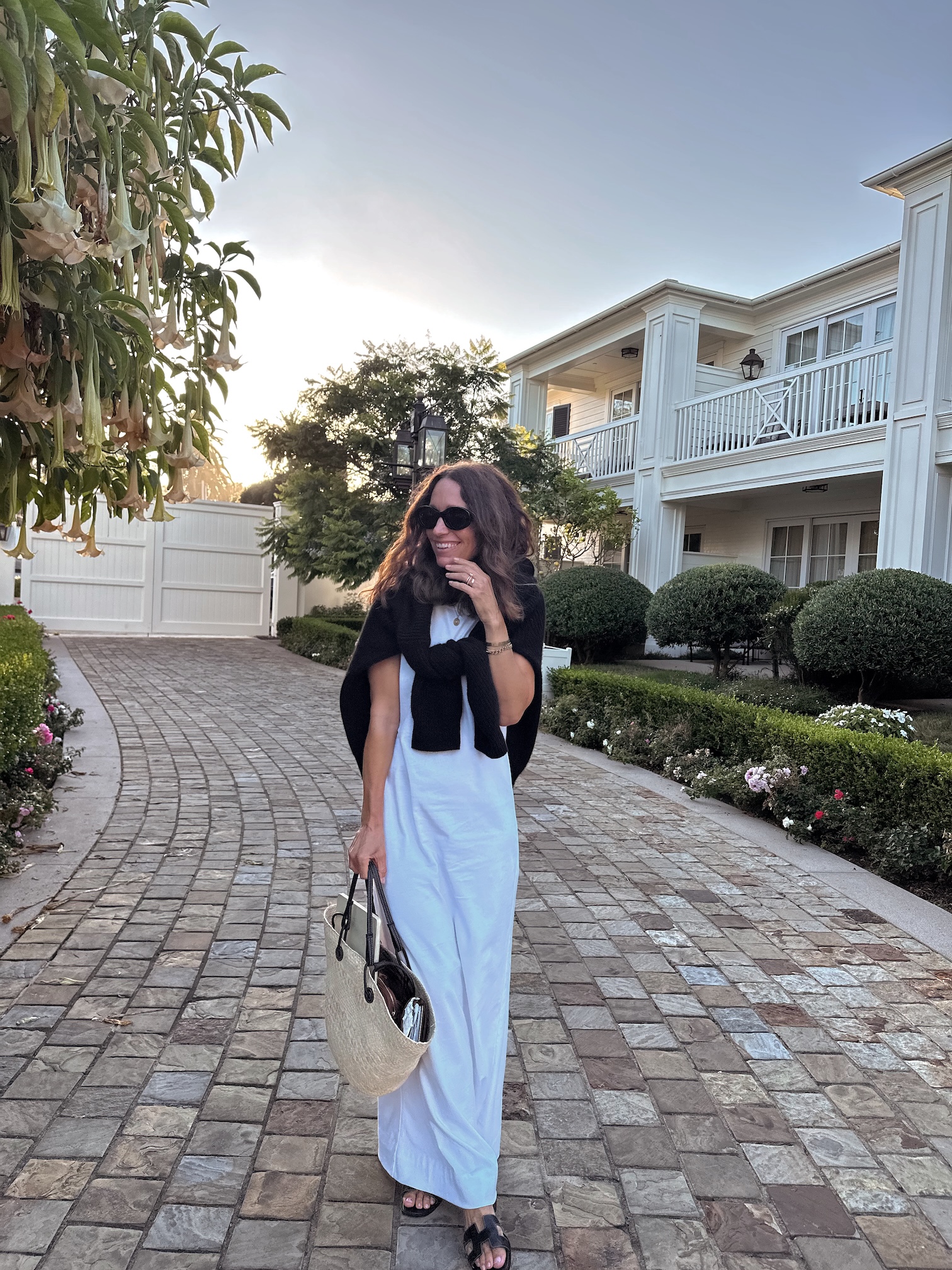 (After a minor blip en route (flat tire), headed to the beach for some tacos… dress, cardigan)