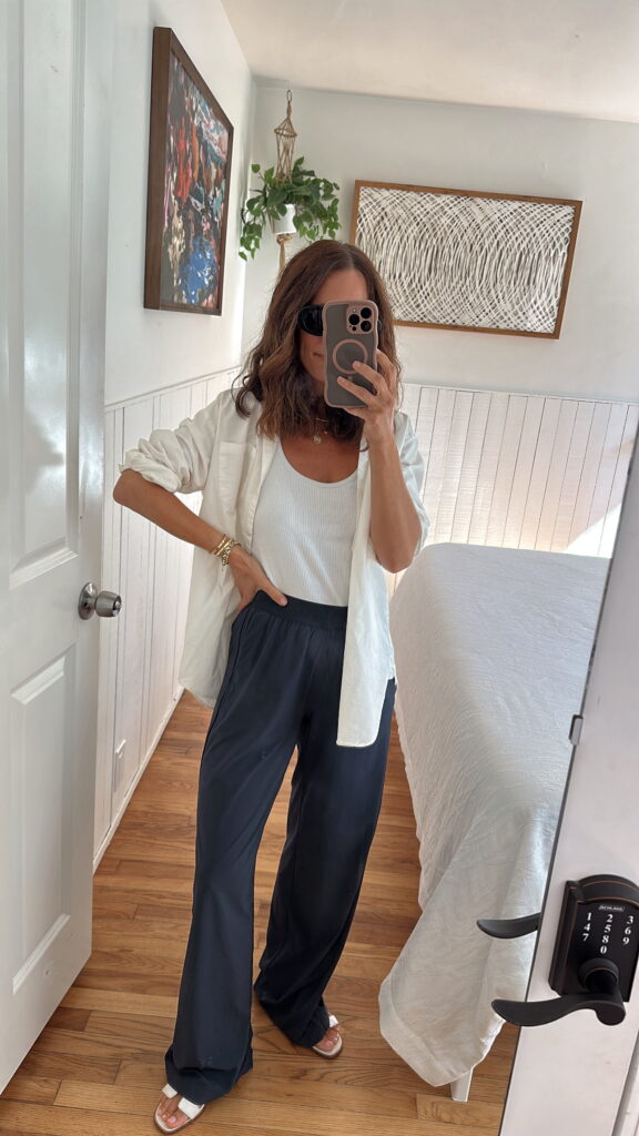 (Simple and casual for Friday’s road trip up north… pants, tank, top)