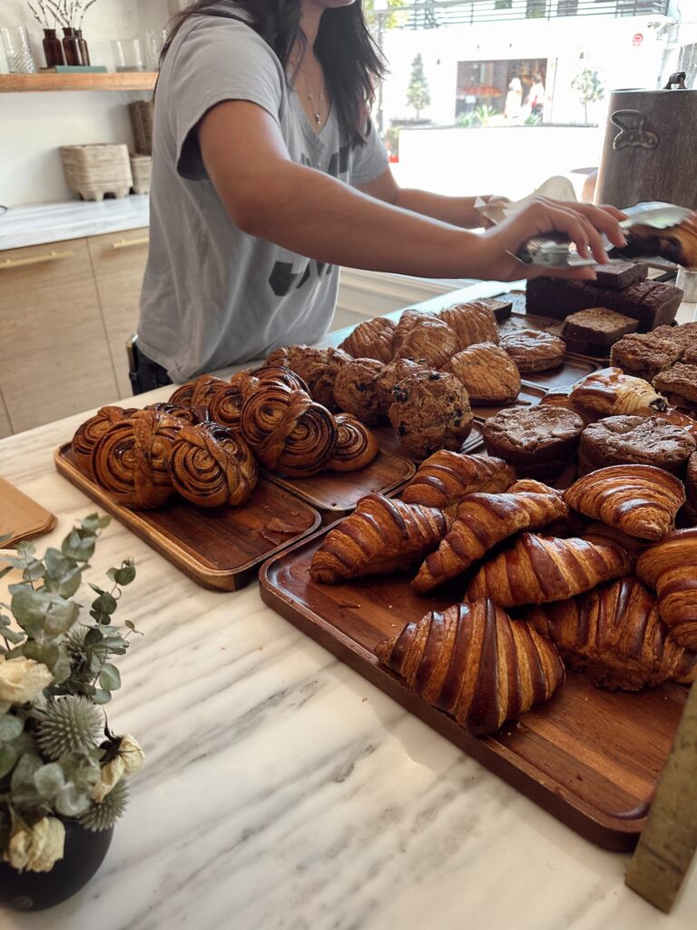 (Friday lunch and croissant tradition… skort, top, sandals)