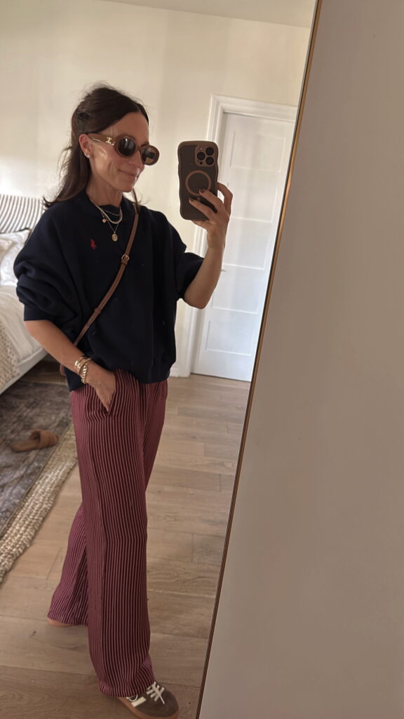 (Fun Saturday night of pumpkin carving with friends… pants, sweatshirt, sneakers)