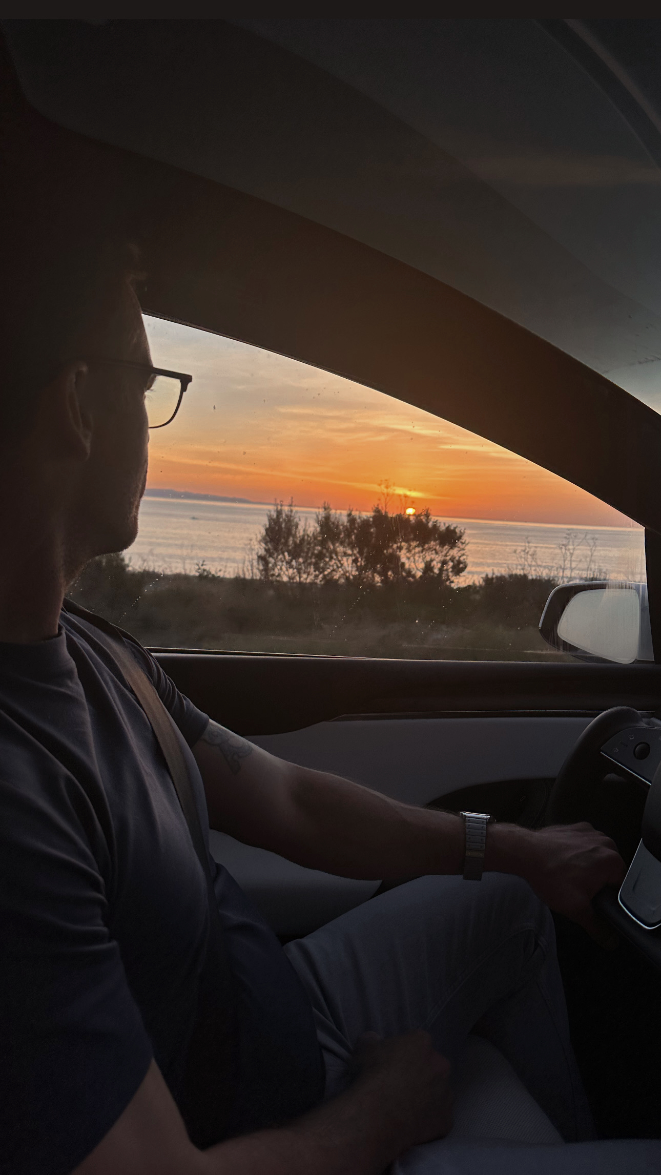 (Early morning drive home… pants, sweatshirt, sneakers)