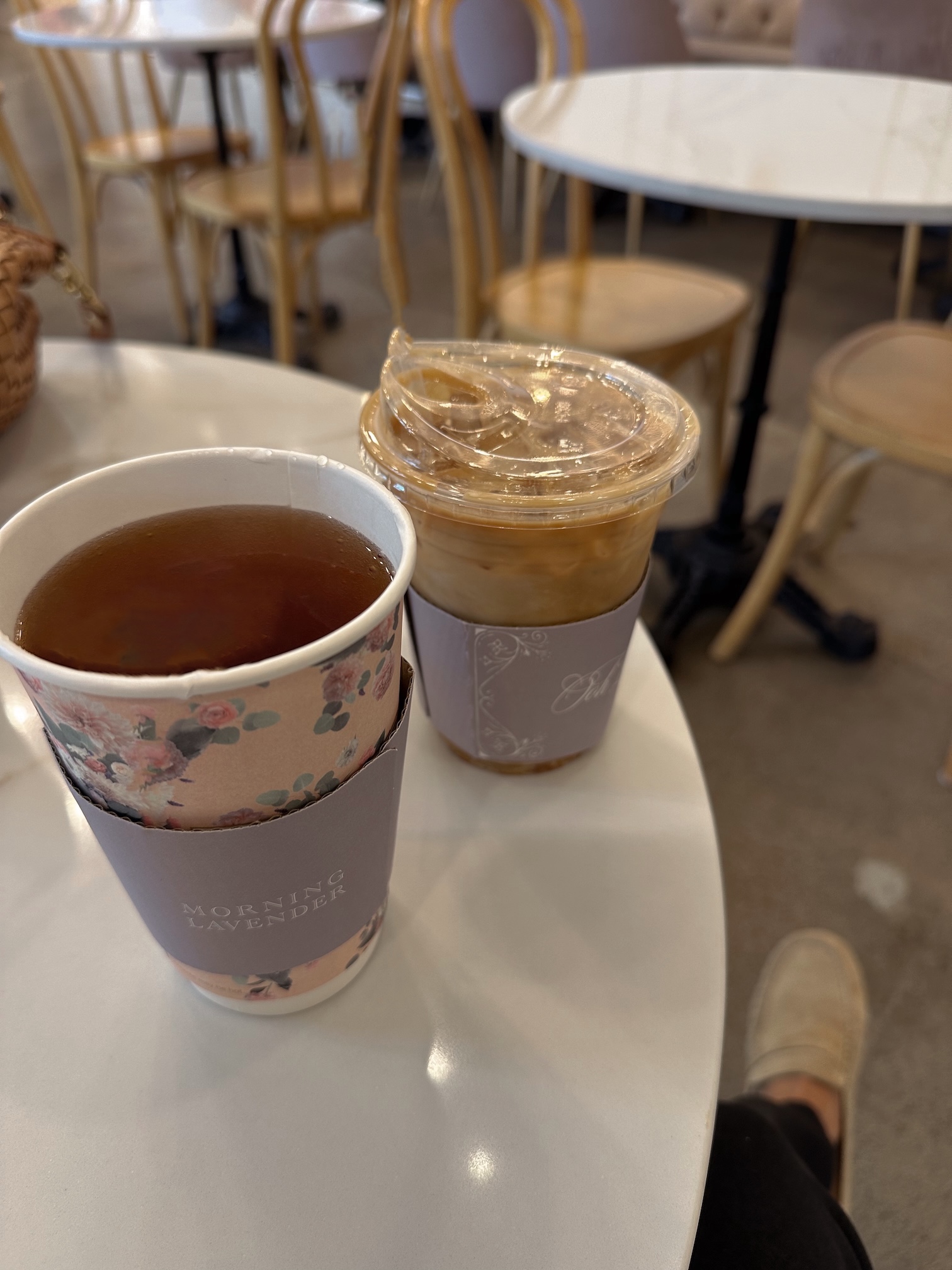 (Quick breakfast and more walk before heading home…. leggings, pullover)